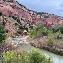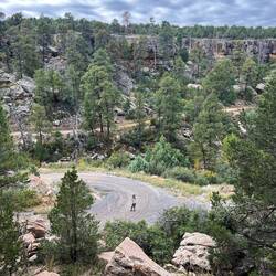 Die Gegend ist unglaublich schön. Unser Campingplatz liegt am Rande des Plateaus mit einer tiefen Schlucht. Es gefällt uns so gut, dass wir gleich drei Tage hier verbringen. Wir wandern zweimal in die Schlucht hinein und kommen an alten Ruinen einer Obstplantage aus dem 19. Jahrhundert vorbei. Viel steht zwar nach einer kompletten Überflutung um 1910 nicht mehr, aber inmitten der massiven Felsen und neben dem malerischen Fluss sieht es einfach nur toll aus. Auf dem Weg entdecken wir so einige Schlangen und auch wieder eine Tarantel 🐍