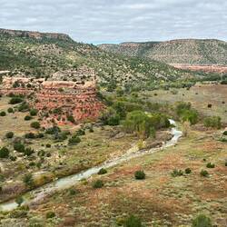 Wir fahren zunächst über ein riesiges, recht flaches Plateau. Grasland so weit das Auge reicht, ein Hügel hier und da. Kurz vor unserem Ziel wird es bergiger und das Plateau reißt vor uns auf. Der Highway schlängelt sich um felsige Klippen mehrere hundert Meter hinab ins Tal und auf der anderen Seite wieder hinauf. Diese Gegend ist unglaublich schön. Die Farben der Felsen, gespickt mit Büschen und dem blauen Himmel sind faszinierend.