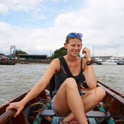 Wir betreten eine kleine Fähre, die uns in Thailand auf die Insel Koh Chang 🐘 bringen soll. Der Rost hält das meiste an dem Gefährt zusammen und übersteht sogar den starken Wind.