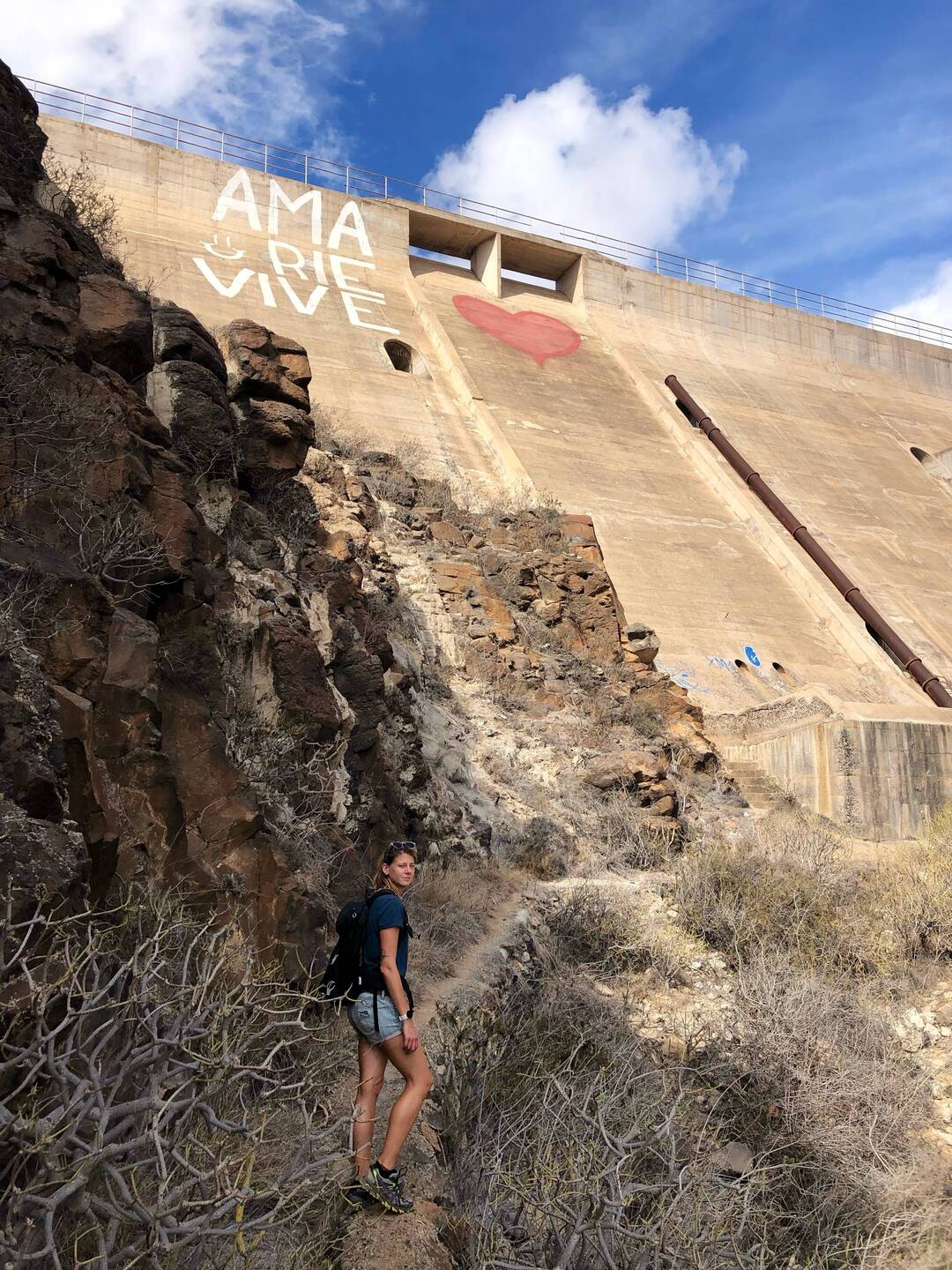 Anfangs dachten wir, dass der Damm zu Stromgewinnung gebaut wurde. Allerdings fehlten dazu die nötigen Maschinen. Nach kurzer Recherche fand Lara heraus, dass der Damm in den 1970er Jahren erbaut wurde und zur Speicherung von Regenwasser genutzt werden sollte. Das klappte wohl nicht wirklich, denn auf Lanzarote regnet es nicht wirklich oft oder viel.