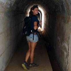 So ganz ohne Beleuchtung ging es dann durch enge dunkle Schächte, Treppen rauf und wieder runter, bis wir am Fuße des Dammes schließlich wieder heraus kamen. Belohnt wurden wir mit dem Ausblick vom Fuße des Dammes durch die Schlucht ins darunter liegende Tal.