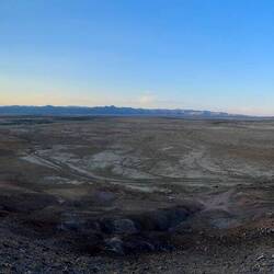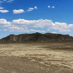 Die verschiedenen bunten Gesteinsschichten sind gut zu erkennen und wir kommen aus dem Staunen nicht mehr heraus. Eine gespenstische Ruhe herrscht hier draußen, die nur von gelegentlichen Windböen unterbrochen wird.