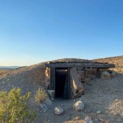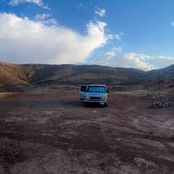 Wir finden auf dem flachen Plateau zwischen den Felsen tief ausgewaschene, alte Flussbetten, ein altes Wasserreservoir und sogar Überreste einer verlassenen Siedlung aus den 1930er Jahren. Die Hauswände aus Lehm und Steinen haben bis heute überdauert. Als Dach wurden dicke Balken oben auf die Wände gelegt und einfach mit Stroh überdeckt. Das Haus an sich sieht wie ein kleiner Hügel aus, so ist es gut in den Boden eingebettet und sich kaum von dem Highway sichtbar.