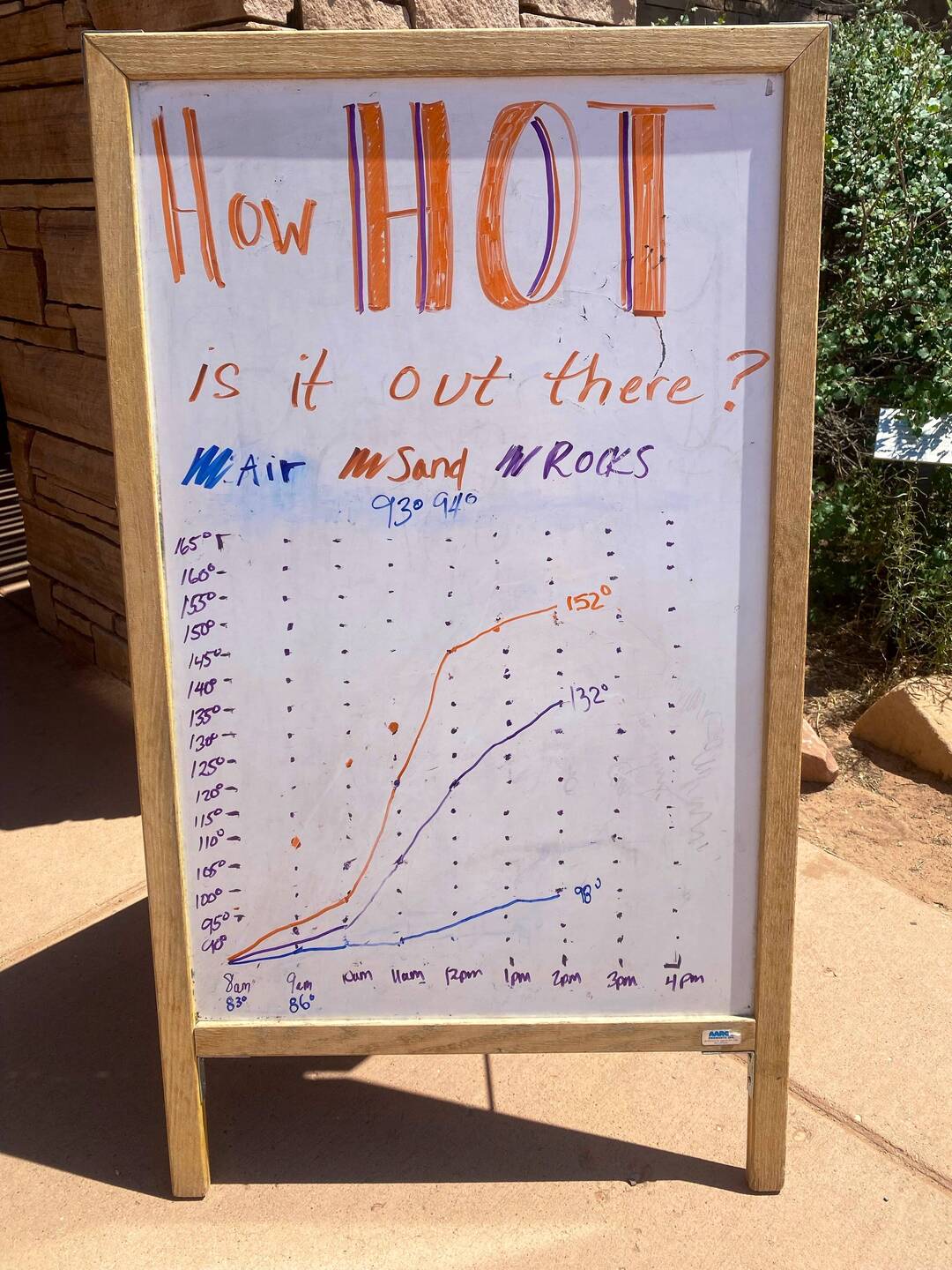 Der Ranger am Kassenhäuschen begrüßt uns freundlich und erklärt, dass heute nur kürzere Wanderungen empfohlen sind, da es mit knapp 40 Grad Celsius wieder extrem heiß wird. In den letzten Tagen sind viele Besucher dehydriert oder haben einen Hitzschlag erlitten. Gut, dass wir so gut vorbereitet sind und immer genügend Wasser dabei haben und mittlerweile ganz gut unsere Grenzen abschätzen können.
