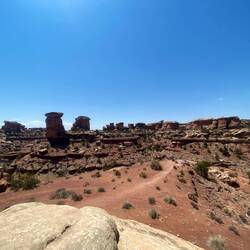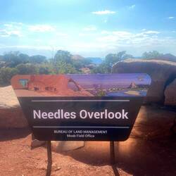 Da es noch recht früh am Nachmittag ist, beschließen wir noch den langen Abstecher zum „The Needles Overlook“ zu machen, um die dem Südteil des Canyonland NP namensgebenden Felsen zu sehen. Durch die Hitze war es unmöglich im Park zu „The Needles“ zu wandern. Der Ausblickpunkt liegt nahe dem Park, erfordert aber eine Anfahrt über eine große Schleife vom Osten.