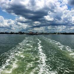 In Belize Stadt, an der Karibikküste, steigen wir nun in eine kleine Fähre um.