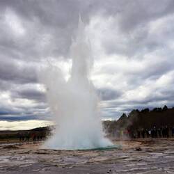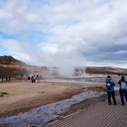 Wir konnten im Hochtemperaturgebiet Haukaladur den Geysir "Strokkur" bei seinen Ausbrüchen bestaunen. Spätestens alle 10 Minuten spukt er eine Wasserfontäne teils bis zu 40m in die Höhe. Steht manBaca lagi