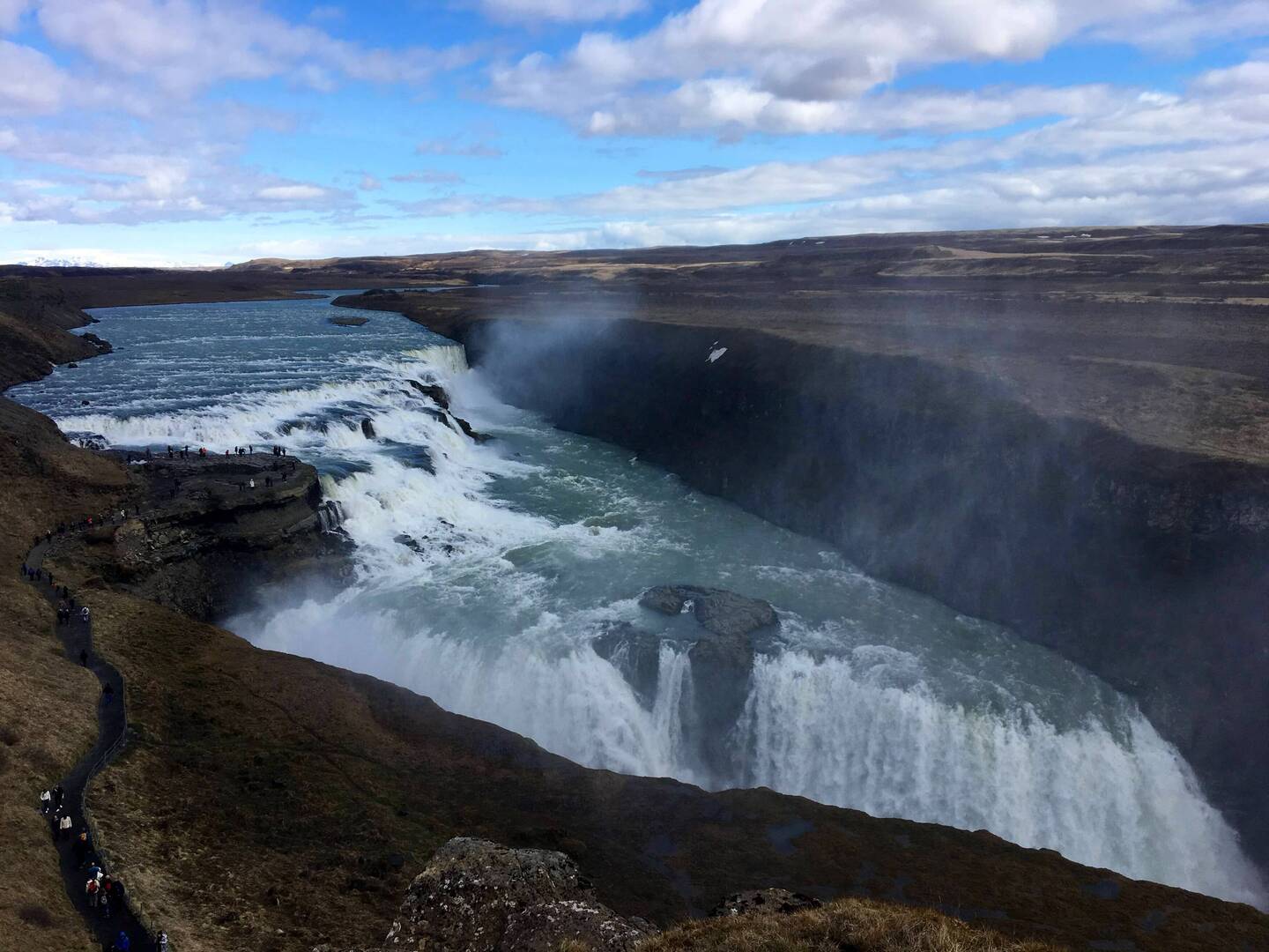 Der Gullfoss Wasserfall, oder auch "Goldener Wasserfall" besteht eigentlich aus 2 Wasserfälle mit einer Gesamthöhe von rund 32m. Ein imposanter Anblick diese unglaublichen Wassermassen durch dieBaca lagi