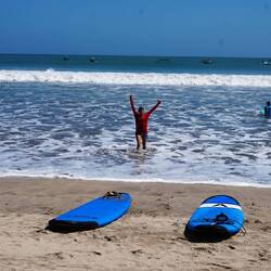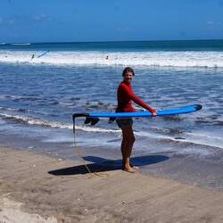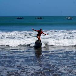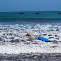 Morgens hatten wir es diesmal geschafft, sehr früh und pünktlich aufzustehen. Wir stärkten uns mit einem leckeren indonesischen Frühstück, denn die Surf-Schnupperstunde startete schon gegen 9:30Baca lagi