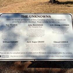 Falls jemand das Buch von Jeannie Gunn (1908) oder den gleichnamigen Film von 1982 „We of the Never Never“ bzw. im Deutschen: „Land hinter dem Horizont“ kennt: Hier liegen einige der Hauptcharaktere begraben und unweit des Friedhofes finden sich die Überreste des einstigen Gehöfts. Das Buch / der Film basiert auf wahren Begebenheiten.
