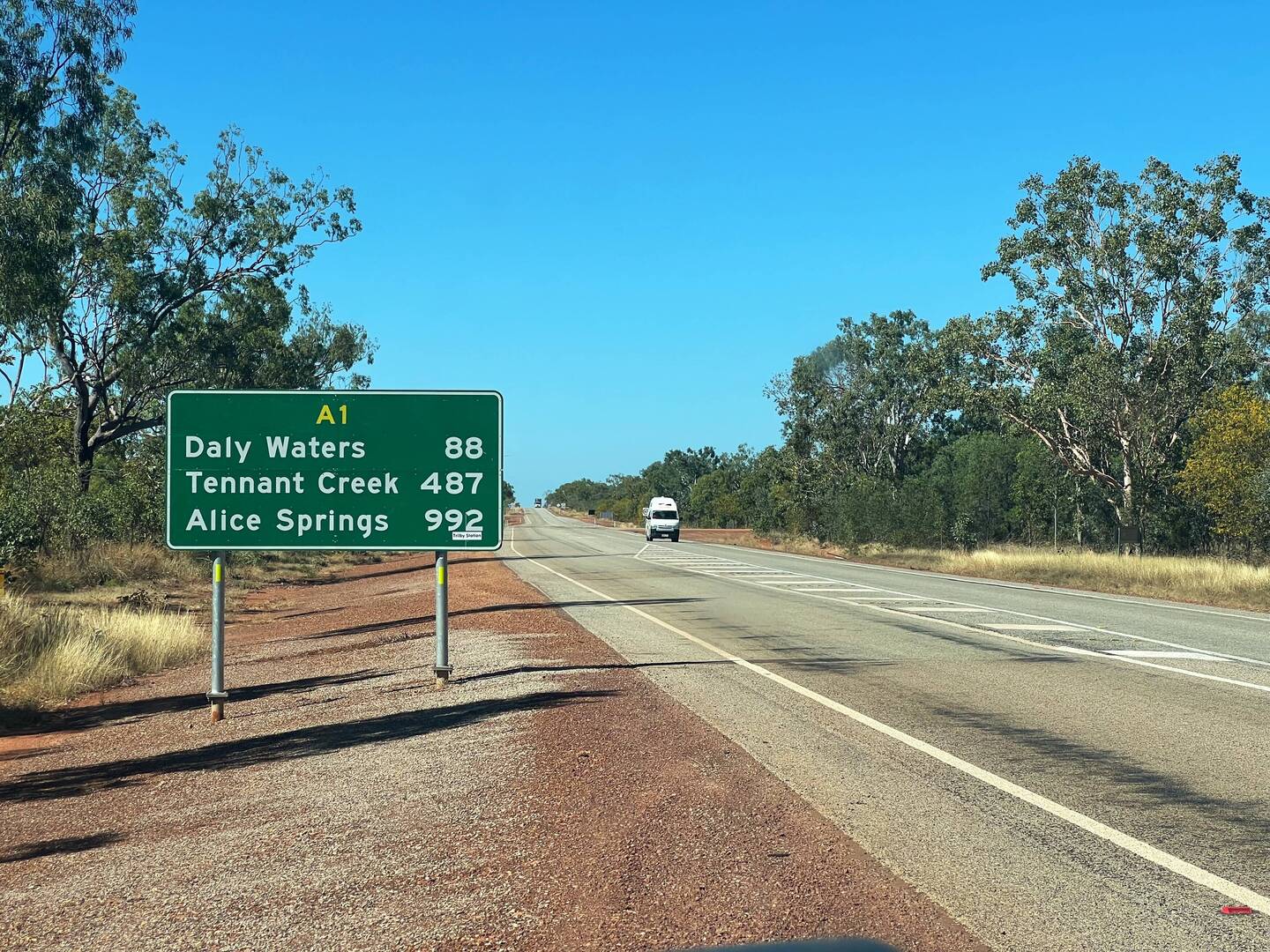 Es geht für uns weiter südwärts durch das Northern Territory und immer den Stuart Highway entlang. Der Stuart Highway verläuft von der Nordspitze in Darwin bis nach Südaustralien und verbindet bei einer Länge von über 2.700km die beiden Staaten miteinander.