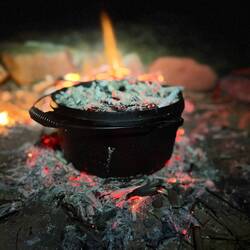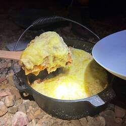 Die Larasagne, auf die wir am Vortag verzichten mussten, wird nun auch wieder im Cast Iron Topf auf dem Feuer gemacht. 🍝