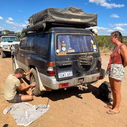 Dort angekommen kümmern wir uns erst einmal um die hinteren Bremsen am Patrol, die sind nämlich ziemlich runtergefahren.Read more