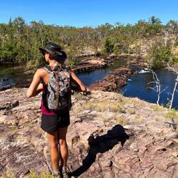 Im Kakadu Nationalpark schauen wir uns nach einem kurzen Aufstieg noch den Gungurul Lookout an und besuchen den ausgetrockneten Seitenarm des South Alligator Rivers.