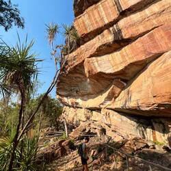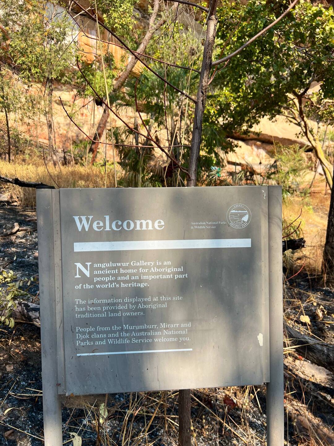 In Jabiru tanken wir zunächst noch einmal voll und fahren anschließend zum Nanguluwur Rock-Art Walk. Die 4km Wanderung führt derzeit durch abgebranntes Buschland, da hier aktiv gebrandrodet wird.Read more