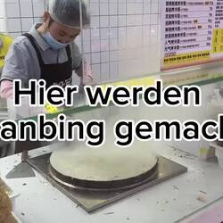Nicht nur heute, sondern auch an den anderen Tagen frühstücken wir übrigens auch klassisch chinesisch. Neben diversen Suppen isst man gern „Jianbing“, das sind auf einem heißen Eisen ausgebackene Teigfladen, die nach herzenslust mit Salat, Ei und Fleisch belegt, bzw. befüllt werden und dann mit einem knusprigen Keks komplettiert, gefaltet serviert werden. (Siehe Video)