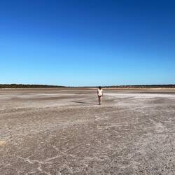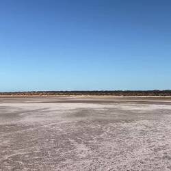 Wir verlassen Merredin nun ostwärts auf der Suche nach einem Platz für die Nacht. Wir schauen uns den ausgetrockneten Bandee Lake an.
