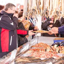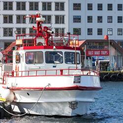Auf dem Camping in Bratland ist es sehr kühl so um die 4 Grad und so ziehen wir uns auch dementsprechend warm an, viel zu warm für Bergen. Mit der 24h Bergenkarte können wir alle Verkehrsmittel inklusive benutzen und so fahren wir zuerst mit dem Bus und dann mit der Strassenbahn nach Bergen wo doch tatsächlich die Sonne scheint und es später so ca. 12 Grad warm wird. In Bergen inspizieren wir den Fischmarkt und den Souveniermarkt mit Richi. Dann machen wir am Hafen ein paar Fotos und anschliessend bestaunen wir die wunderschönen Häuser an der Promenade. Die kleinen Gässchen mit den herzigen Läden haben es uns angetan und Richi findet überall wieder einen Souvenier-Shop ;-)