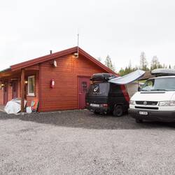 Unsere Weiterfahrt in Richtung Nordportal ist ziemlich regnerisch und die Umgebung wird von Kilometer zu Kilometer immer spärlicher. Am Nordportal wo wir die Grenze zu Nordnorwegen überschreiten istLæs mere
