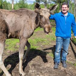 Wir verlassen die nördlichste Stadt Schwedens Kiruna und fahren in Richtung südwärts durch das Land. Es fällt uns auf dass es immer wieder Baustellen hat wo die Strassen neue geteert werden. Die Folg mi Fahrzeuge kennen wir ja inzwischen, ein Baustellenfahrzeug das vorfährt und die ganze Kolonne hintendrein fahren muss. Die Fahrt geht immer wieder durch Wälder und langsam sehen wir vor lauter Bäume schon fast nichts mehr. Wir machen einen Halt in Vittangi wo wir einen Elchpark aufsuchen möchten. Als wir dort ankommen steht zwar auf dem Schild offen, doch es ist weit und breit keine Menschenseele und wir machen von den schönen Häusern ein paar Fotos. Zum Gehege der Elche steht aber eine Warntafel, dass einerseits ohne Guide der Zutritt untersagt ist und andererseits die Anlage Videoüberwacht ist. Kurz bevor wir wieder losfahren möchten kommt der Chef der Anlage angebraust und begrüsst uns herzlich. Sofort geht er mit uns ins Gehege und wir bestaunen was für Elche es hier hat. So können wir doch noch einmal Elche von ganz nah sehen und sogar anfassen. Lars Björk gibt uns kleine Bananen die die Elche ganz gerne fressen und so können wir auch direkt mit ihm ins Gehege direkt zum Elch wo er auch ein Fotos von uns macht. Es ist wahnsinnig imposant wenn man neben einem solchen grossen Elch steht. Man kann sich gar nicht vorstellen dass so ein Elch bis 60 km/h schnell laufen kann. Ja sogar schwimmen und tauchen können sie, da sie die einzige Hirschart sind die zwischen den Schalen sogenannte Schwimmhäute haben. Ein ausgewachsener Elch hat eine Schulterhöhe von ca. 2.3 m und wird bis zu 800kg schwer. Nicht auszudenken was passiert wenn so ein Elch vor ein Auto läuft. Darum fahren wir auch sehr vorsichtig und langsam immer wenn diese Elchwarntafeln auf Gefahr hinweisen. Lustig ist auch noch, so erklärt uns Lars dass die Elche sehr kleine runde Kügelchen als Ausscheidungen hinterlassen, kaum zu glauben dass so ein riesiger Elch so kleine Kügelchen ausscheidet. Der Elchkot enthalte sehr viel Zellulose aus welchem Papier hergestellt werden könne. So zeigt er uns einen selbergemachten Geldschein aus Elchkot....er lacht und meint....es sei Scheissgeld ;-) Wieder etwas spannendes gelernt und voller Freude dürfen wir noch einen kurzen Informationsfilm über die Tierwelt in dieser Gegend sehen. Da haben wir wirklich eine sehr private Führung von Lars erhalten und danken ihm nachdem wir natürlich noch in seinem Souvenier-Shop gestöbert haben ;-)Leer más