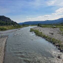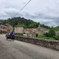 It was a rainy night and morning in Le Cheylard, but we were relieved when the rain abated around breakfast time. Claire enjoyed playing with some new friends at the playground, then we set off downOkumaya devam et