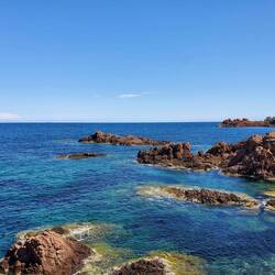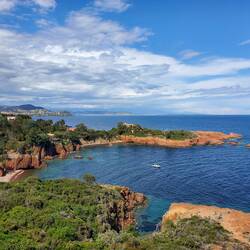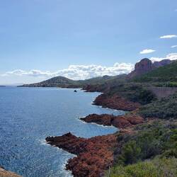 Our great campsite near Cap Roux required a hiking exit, but luckily Claire was motivated to start the day (certainly not always the case!). We enjoyed more quiet coastal road for the morning until weOkumaya devam et