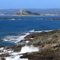 Heute waren wir zu Fuß unterwegs. Vom Stellplatz in Praa Sands wandern wir den aussichtsreichen Coast Path 6 Meilen zum St. Michaels Mount . Der schmale Wanderweg schlängelt sich entlang derBaca lagi