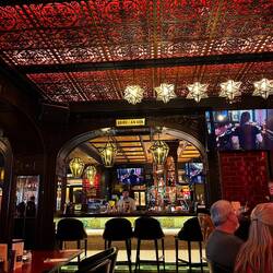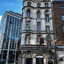 Oscar Wilde coloured statue on a rock. Random street lights and ornate doors. Street art. Half Penny Bridge. Murray’s Public house for lunch ! My first Guinness drink.