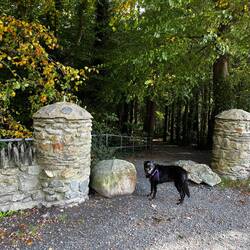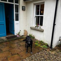 Beautiful old cottage with lovely grounds and Tara the dog showed us around in the drizzling rain.