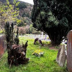 Tree sculptures, trees that grow from stumps, love old grave stones - the way people are remembered!