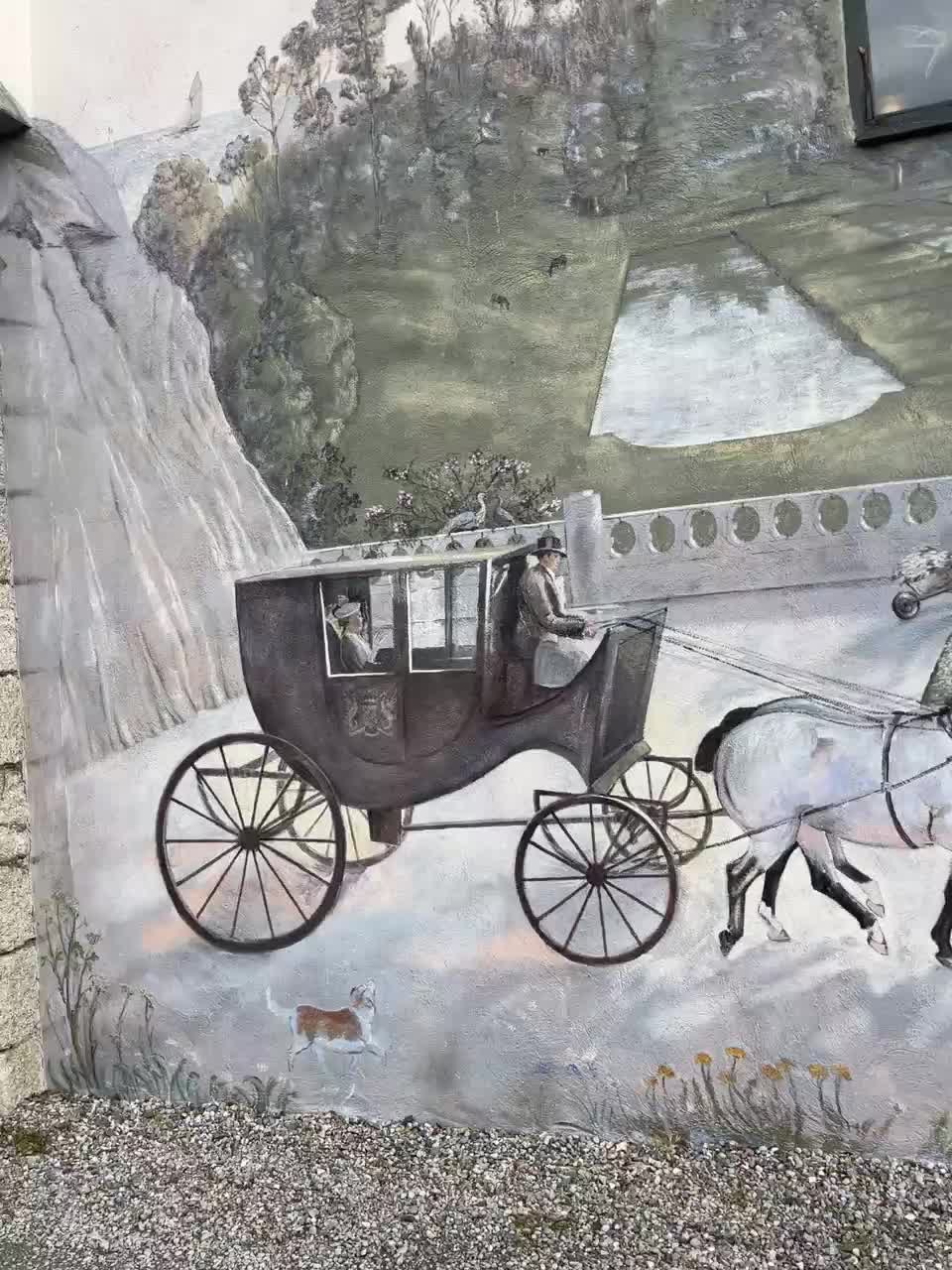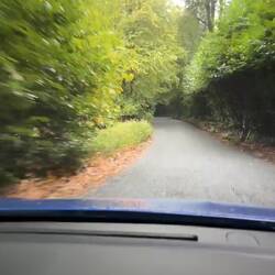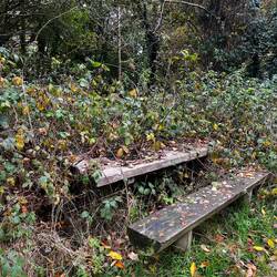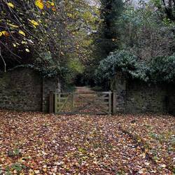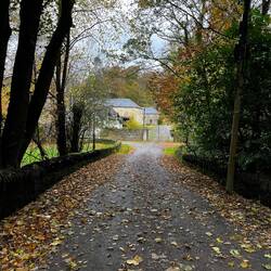 Just another drive down beautiful road in autumn. Zoom in to the picture with words. They used to bleach the linen in the grass, servants using the tunnel. The timber log seat has words on it.