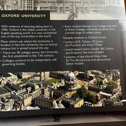 Population of Oxford 162,409, 24,000 students studying and living. 44 colleges
