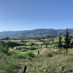 Bevor die Golfer wach werden, nutze ich die Gelegenheit, nochmal eine kleine Runde über den sehr hügeligen Golfplatz zu laufen.