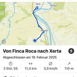 Heute stand eine Wanderung auf dem Programm. Über 11,5km ging es über Aldover nach Xerta. Immer auf dem Via Verde, entlang von Orangen-Plantagen und Bewässerungskanälen. In Xerta gönnten wir unsBaca lagi