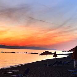 Heute sind wir ca. 400 km von Kastraki bis Glyfa auf den Peloponnes gefahren. Hier stehen wir am Camping Ionion Beach, direkt am Meer. Es hat 26°C und man kann noch im Meer baden.