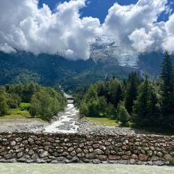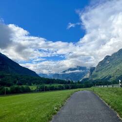It was quite challenging to also keep an eye on the road. It is pretty intimidating riding along these high peaks and the glacier. Nice.