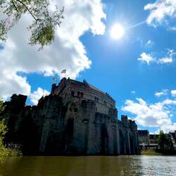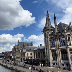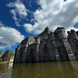 Auf dem Weg nach Ostende schauen wir uns noch das wunderschöne Gent an. Bei einer Bootsfahrt genießen wir die ersten Sonnenstrahlen.