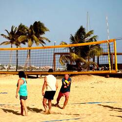 Morgens wieder am Strand entlang nach Santa Maria ins Papaya, nachmittags eine Runde Volleyball..