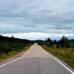 Der Snow Route nach durch’s Skigebiet auf 660 m nach Balmoral Castle, dem Sommersitz der Royals. Auf der Suche nach dem Stone Circle wieder viele Meilen durch die Pampa.