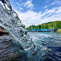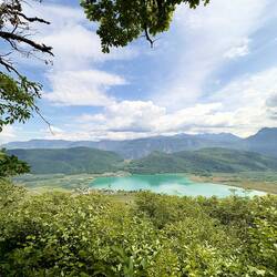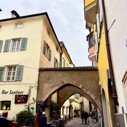 Nach dem Frühstück erst mal nach Kaltern. Noch ziert sich die Sonne. Trotzdem genießen wir einen Cappuccino (bzw. Hugo 😂) auf dem Marktplatz.