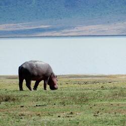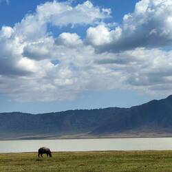 Heute sind wir früher los, mal wieder auf Raubtiersuche. Am Kraterrand ist es noch kühl und wir hoffen auf Löwen und Rhinozerosse. Und eigentlich ist der Krater eineLes mer