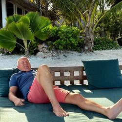 Rupert fängt den Tag um 6 Uhr mit einem 90-minütigen Strandspaziergang an, ich schauLes mer