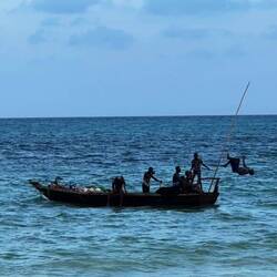 Heiligabend auf Sansibar. Nachmittags noch den Jungs beim Palmklettern zugesehen, dann warten aufs Christkind…