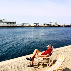 Abends noch ein kurzer Gang an die Danziger Bucht, dann erholen von der stressigen Überfahrt 😅