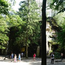 Ein skurriler Ort. Alles ist aus privater Hand organisiert. Der Parkplatz zum Bersten gefüllt, Reisebusse und sogar ein Wohnmobilstellplatz im dichten Wald. Nachdem man Eintritt bezahlt hat, kann man dann im Shop eine deutschsprachige Karte der riesigen Anlage erwerben, um einen Rundgang über das Gelände zu machen. Ein Bunker reiht sich an den anderen, 8m dicke Betonwände und Decken, aus deren Rissen Bäume wachsen und alles von Moos überzogen ist. Mit der Sonne, die durch die dichten Bäume dringt, eine mystische Stimmung. Dazwischen polnische Guides, die auf verschiedenen Sprachen ihren Gruppen Erklärungen abgeben. Nach Kriegsende hatte man vergeblich versucht, die Anlage zu sprengen, was aber angesichts der Betonstärke nicht gelang. In einer Halle dann eine Ausstellung zum Gedenken an die Opfer und am Ort des missglückten Attentats eine Platte und eine Inschrift sowie eine Tafel mit dem genauen Tagesablauf vom 20. Juli.