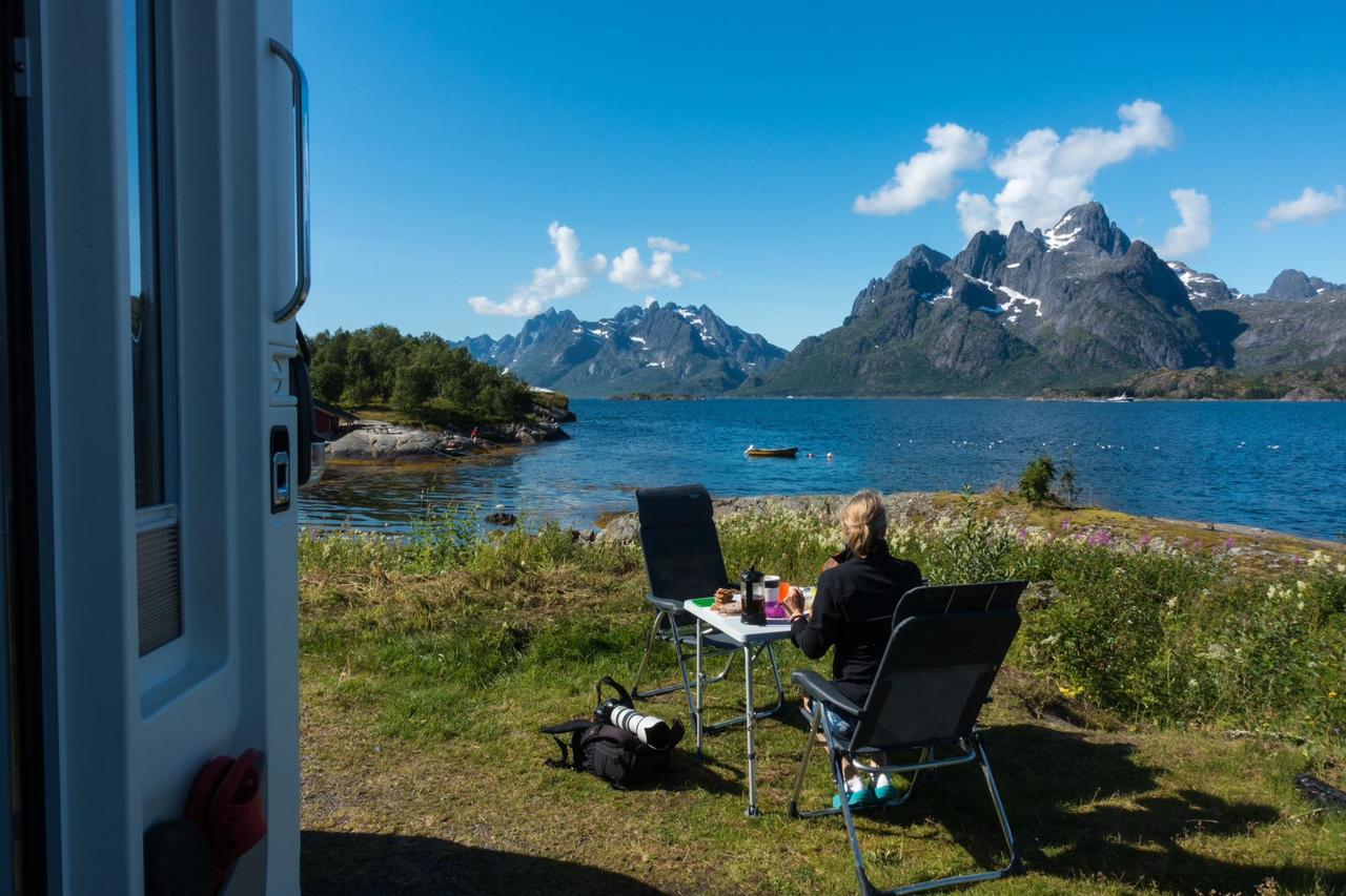 In Ballstad, einem aktiven Fischerdorf, standen wir über Nacht direkt am kleinen Hafen am Steg. Zum Abendessen bekamen wir von einem Fischer frische Makrelenfilets zum Grillen fast geschenkt - imLue lisää