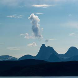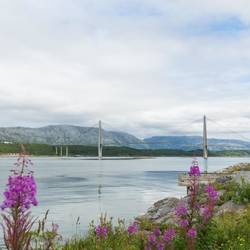 Von Lødingen setzten wir heute bei Sonnenschein und Windstille mit der Fähre nach Bognes über. Das norwegische Festland empfing uns mit gewaltigen Bergen, auf denen Schmelzwasser im SonnenlichtLue lisää