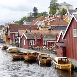 ...liegt Mandal, die südlichste Stadt Norwegens! Weisse Holzhäuschen säumen die Gassen. Einladende Hafenpromenade und stadteigener Strand mit Parklandschaft. Was will man mehr?