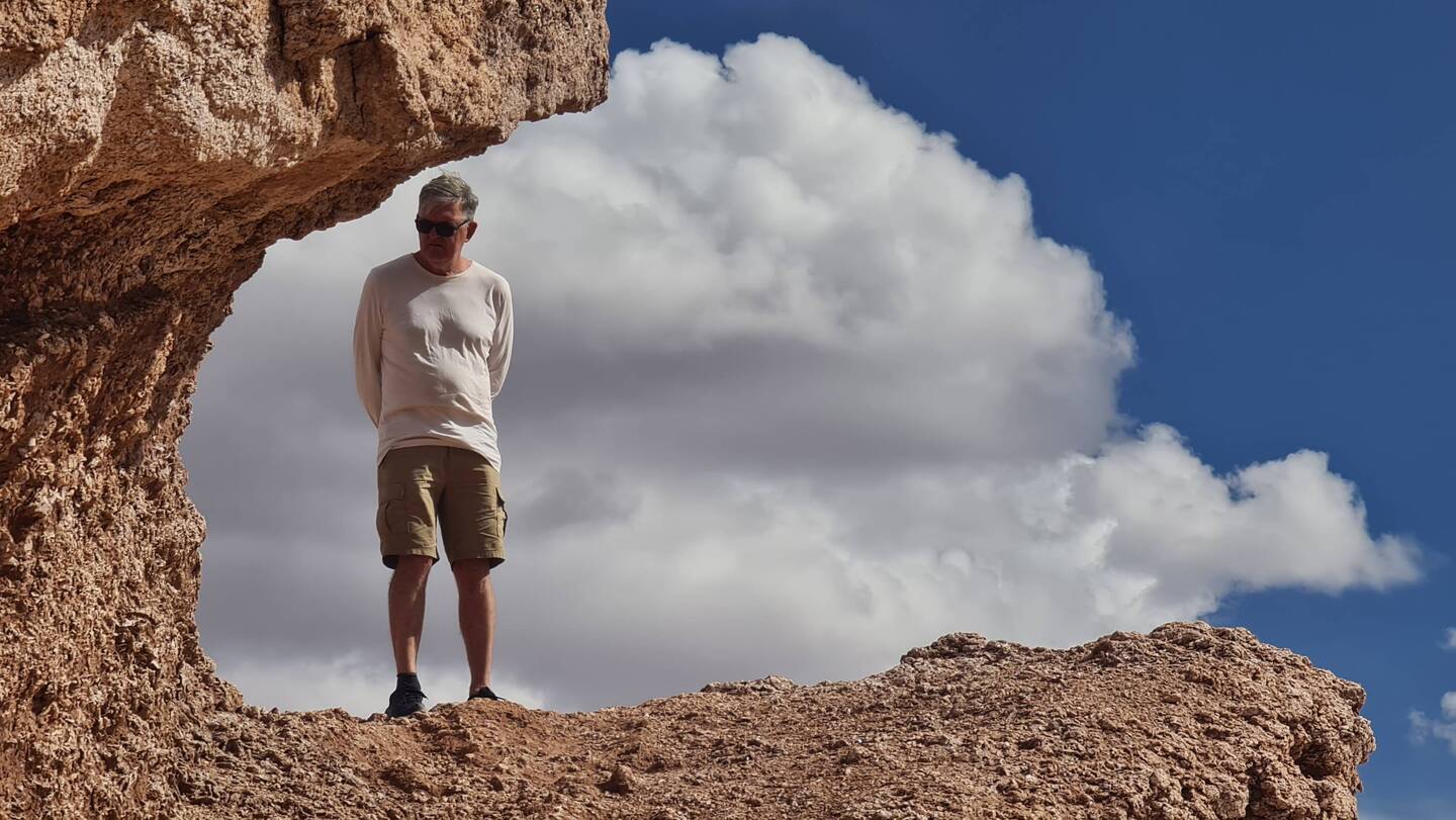On the 17th, we moved West from Uyuni, Bolivia, to San Pedro de Atacama, Chile. The journey started at 6 am, after getting up at 5, and finally got us there around 6 pm. That included about 8 hours bus ride 2 hours, at Bolivian and Chile passports and customs controls, one hour to pick up a hire car ( actually a hire truck), and then driving the last 100km in the truck for an hour. Long journey , tiring, but also passing through unique scenery of innumerable giant volcanoes, salt flats, then later sandstone formations and then yet more snow-capped mountains and volcanoes It may sound repetitive, but in fact, each step is different and wonderful in its own way.