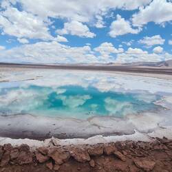 The Laguna is a series of salt water pools in a glacial valley, whose floor consists of lava rocks and salt flats that are up to 900m deep.